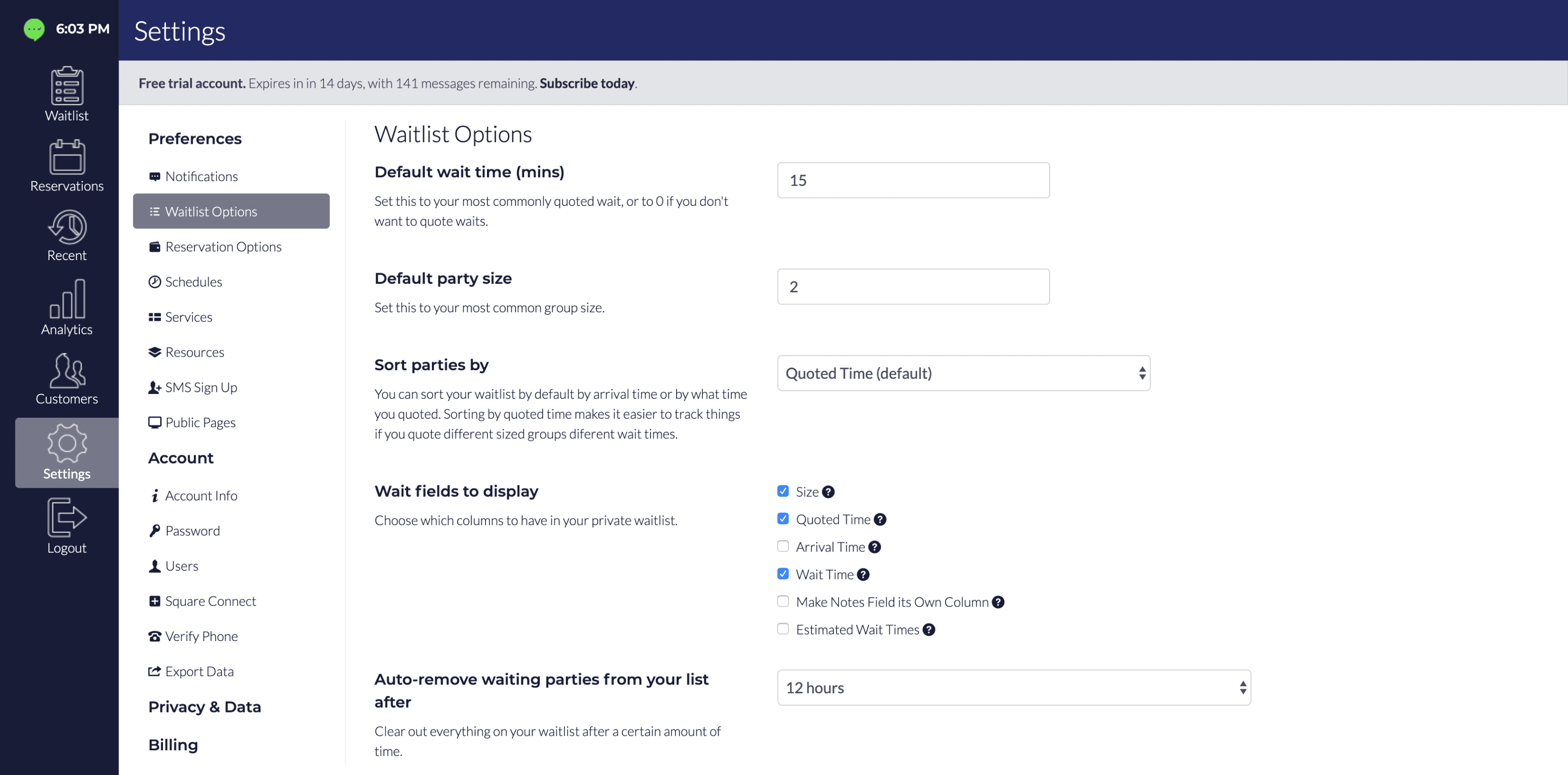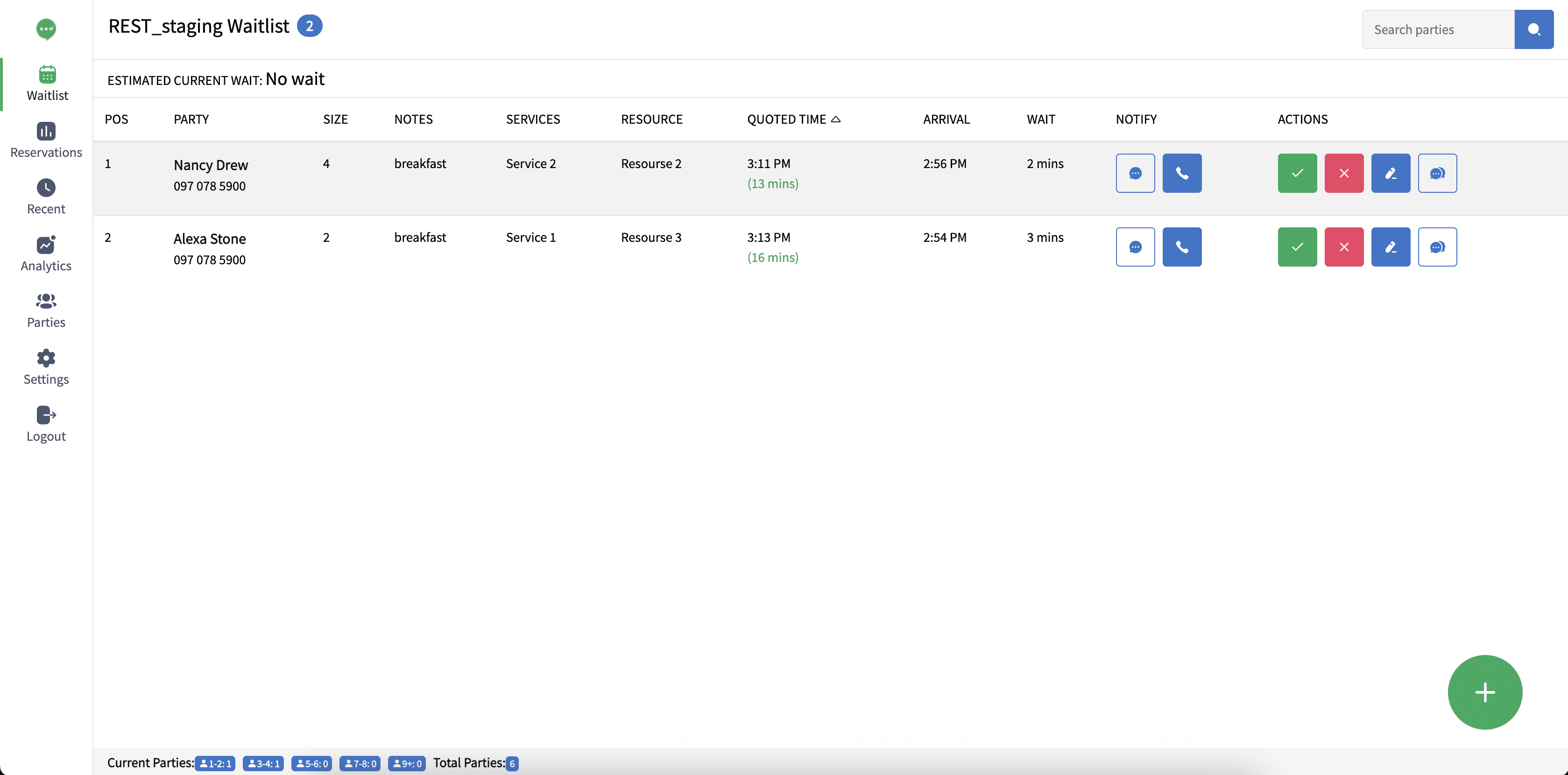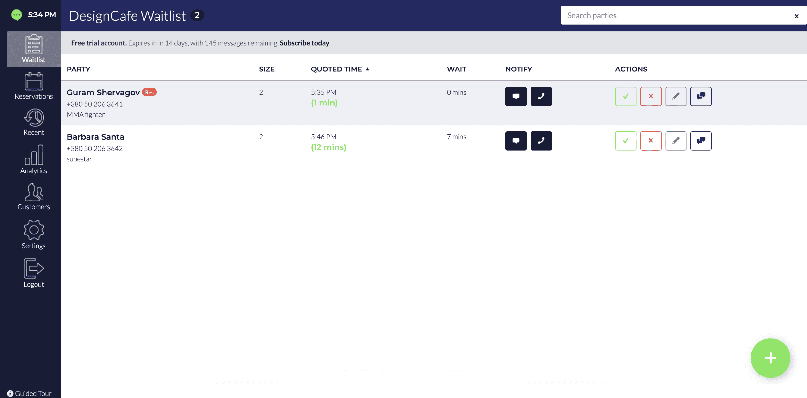 – Guests can join a waitlist or make reservations, also book services with a TR link or by SMS registration