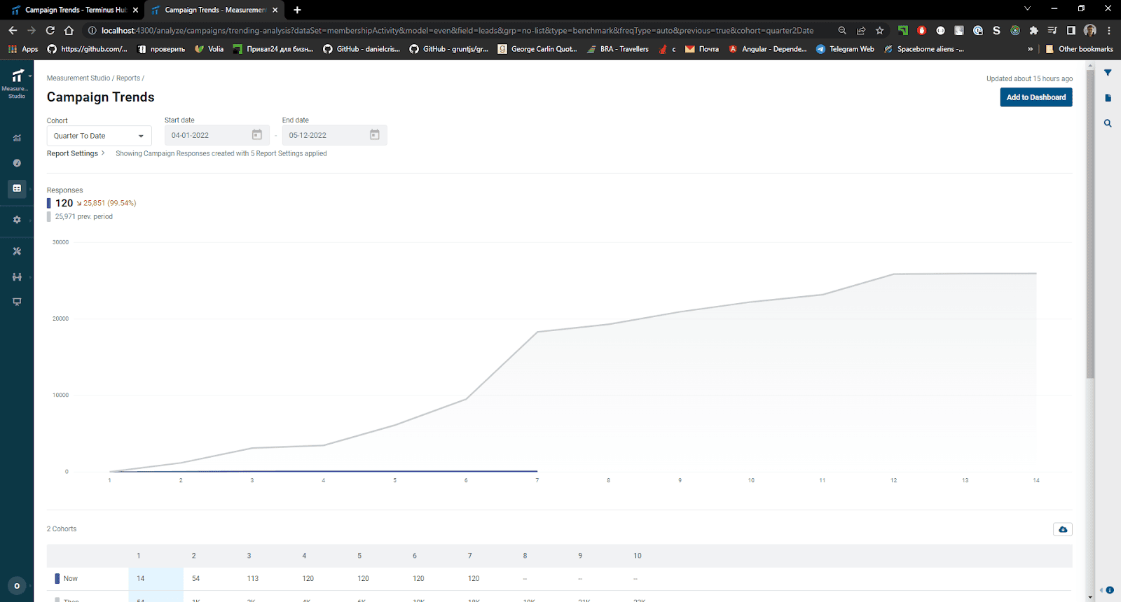Terminus Data Studio allows defining and finding the most relevant audiences to target sales and marketing campaigns at maximum efficiency. Users get access to deep firmographic data on 70 million businesses provided by Terminus and build custom target account lists! While Measurement Studio helps users measure and streamline their entire revenue strategy. We’ve had a great deal of success here in migrating the applications to modern Angular rails and reorganizing the codebase for higher visibility and usability.